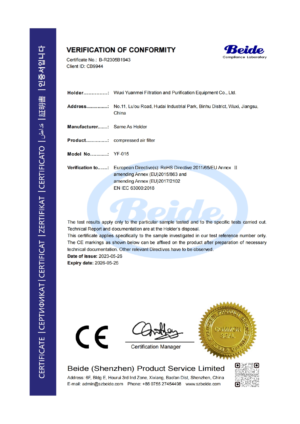 우시 위안메이 여과 및 정화 장비 유한회사는 장쑤성 우시, 아름다운 타이후 호수 옆에 위치하고 있습니다.
